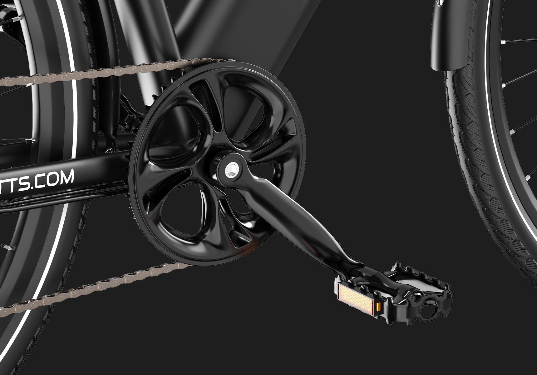 Inteligentny system wspomagania pedałowania (4 poziomy) precyzyjnie dostosowuje moc do siły Twojego pedałowania. Osiąga maksymalną prędkość 25 km/h, co czyni go idealnym do miejskich dojazdów, zgodnie z normami UE.