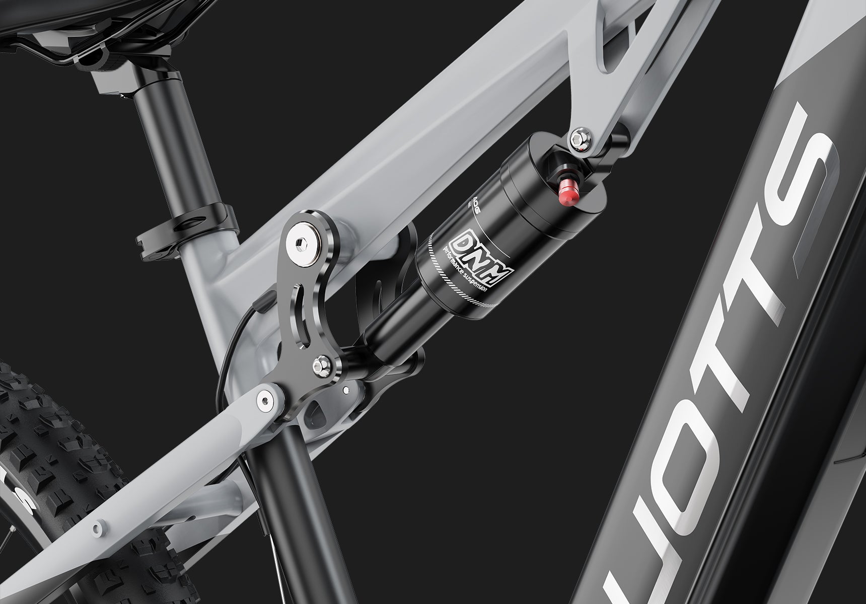 Regulowany amortyzator powietrzny DNM (750 lbs) dopasowuje się do wagi rowerzysty oraz rodzaju terenu, zapewniając płynny powrót i lepszą kontrolę. Zwiększa komfort oraz stabilność na technicznych trasach i w warunkach terenowych.
