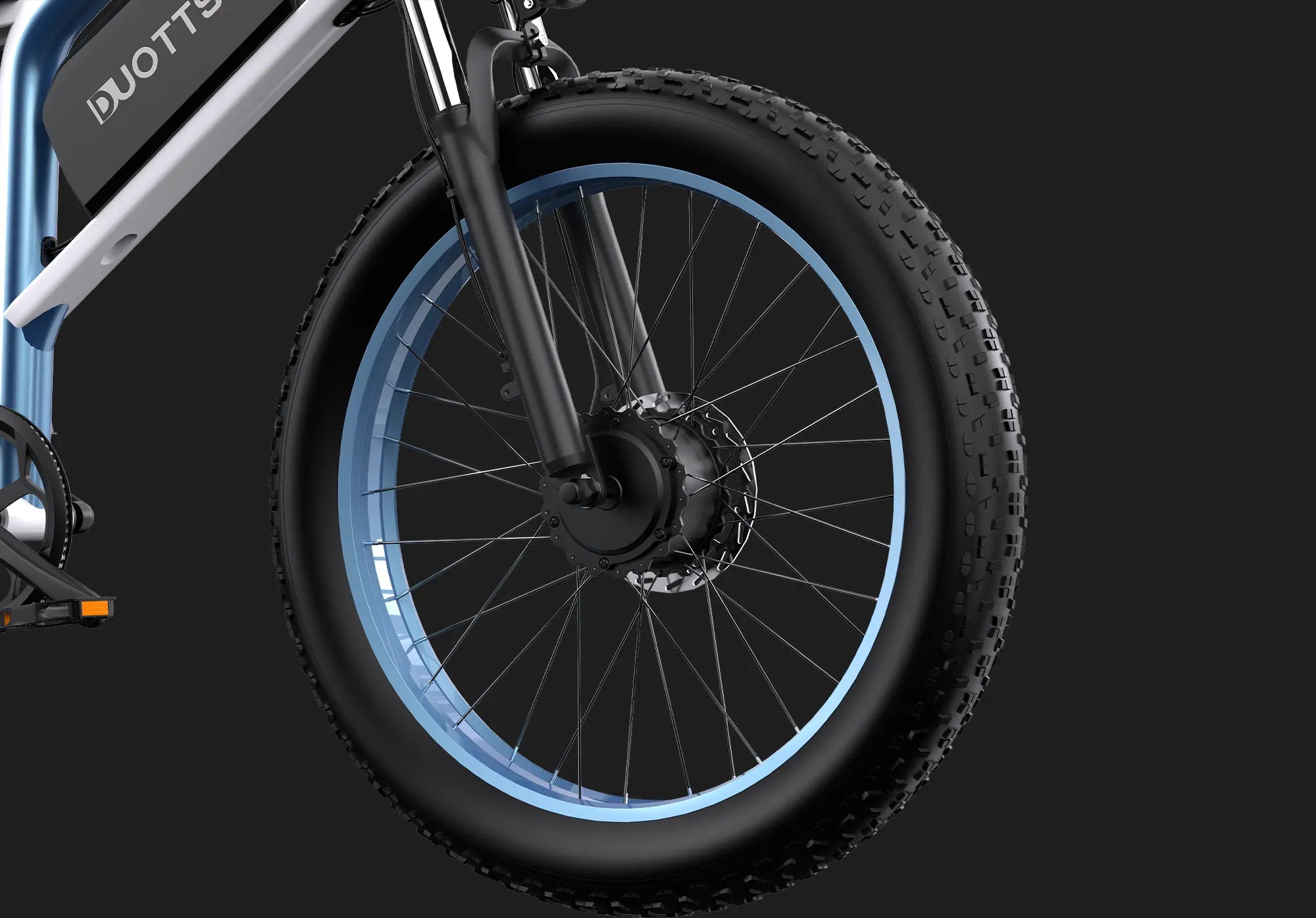 Opony typu fat 26×4,0 cala zwiększają możliwości terenowe N26. Dzięki swojej dużej szerokości zapewniają lepszą nośność i stabilność, gwarantując bezpieczną jazdę nawet w trybie podwójnego napędu.