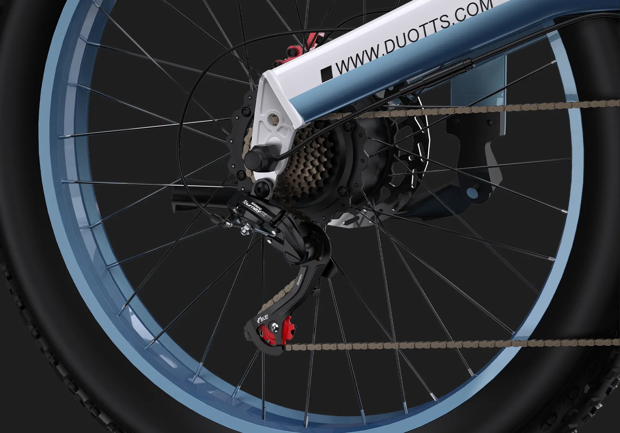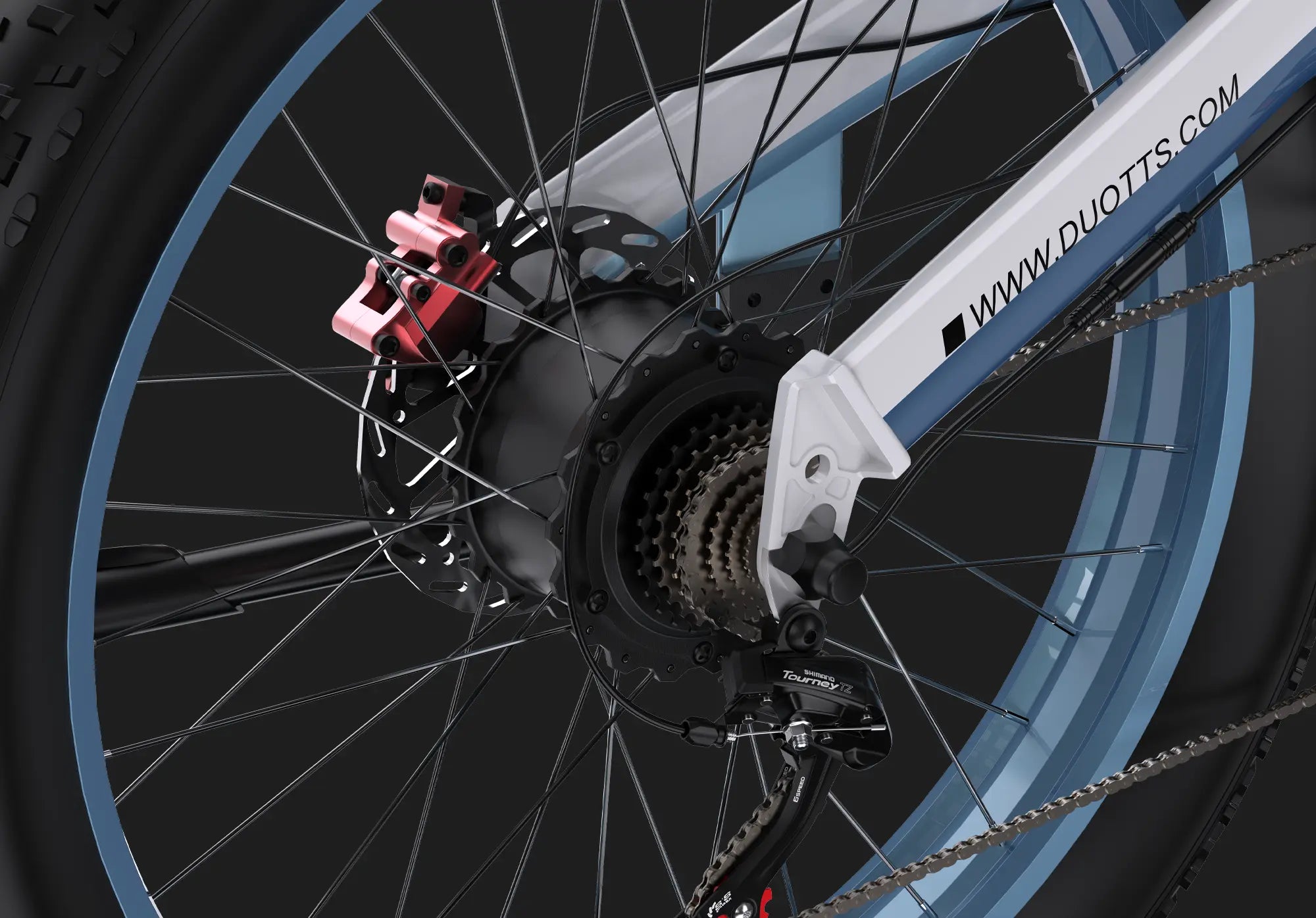 N26 jest wyposażony w silniki 750W zarówno z przodu, jak i z tyłu, zapewniając łącznie 1500W mocy w trybie napędu podwójnego, łącząc efektowny wygląd z potężną wydajnością. Jednym przyciskiem rowerzysta może przełączać się między trybem napędu pojedynczego a podwójnego, łatwo dostosowując się do różnych rodzajów terenu.